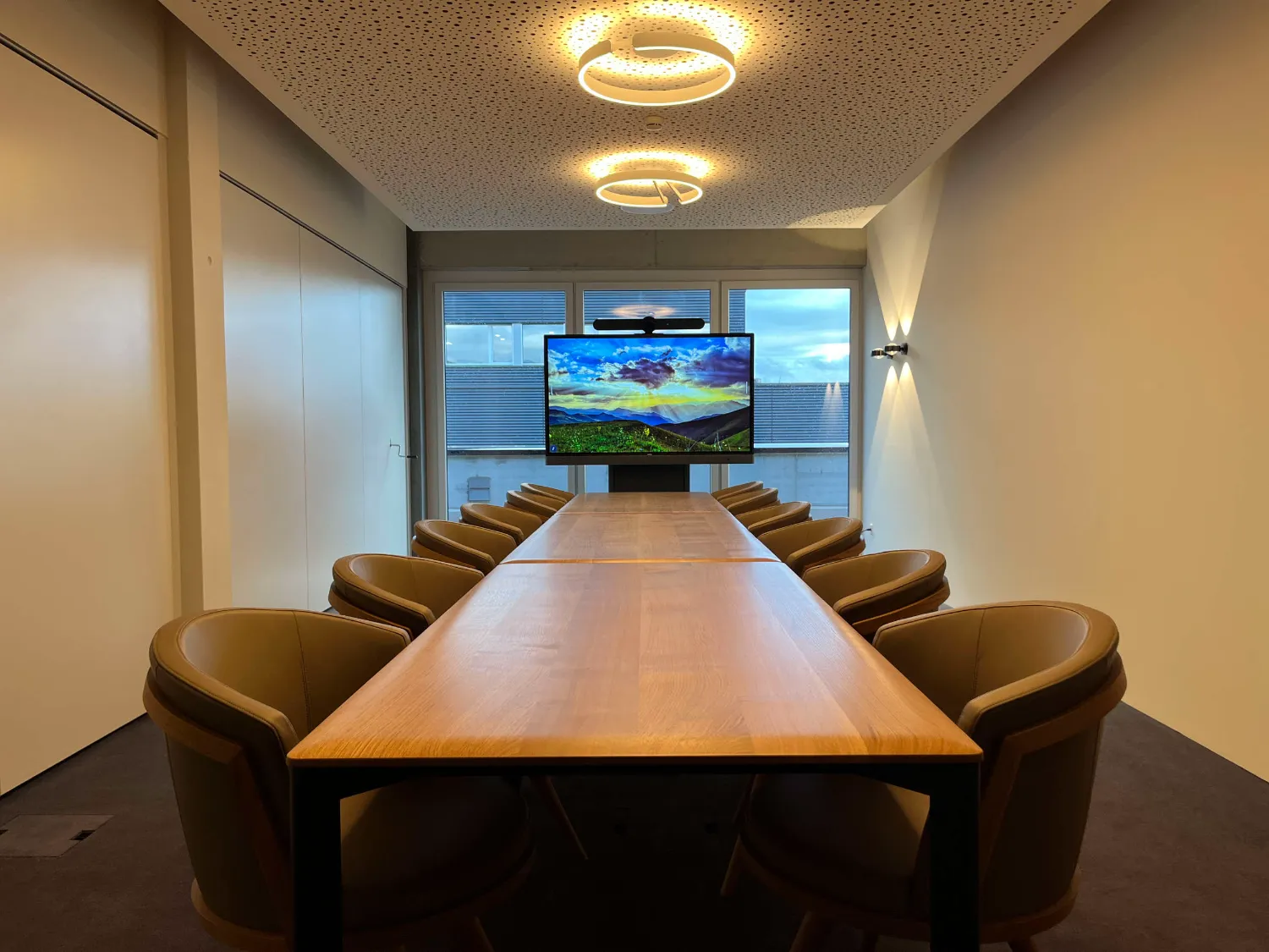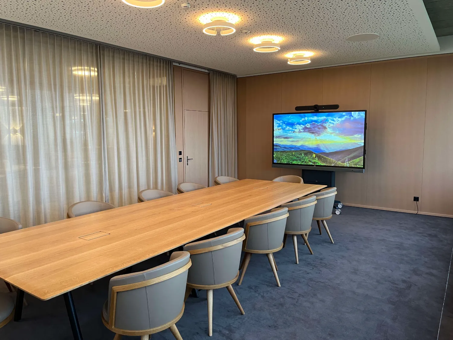 Der Firmenneubau der Regloplas AG in St.Gallen durfte mit modernen Videolösungen ausgestattet werden. Die unterschiedlich grossen Sitzungszimmer und Besprechungsecken wurden mit BenQ Touchdisplays in den Grössen 65", 75" und 86" ausgerüstet. Die Videokonferenzlösung von Logitech in Kombination mit dem Präsentationssystem von Barco ermöglicht die Laptopspiegelung und die Bedienung über das Touchdisplay mit nur einem Klick. Im grossen Seminarraum sorgt ein 100" Display von Sony für eine übersichtliche Präsentation. Ein 75" Sony Display beim Empfang und im Personalrestaurant dienen der Informationsanzeige über einen webbasierten Digital-Signage Player.
