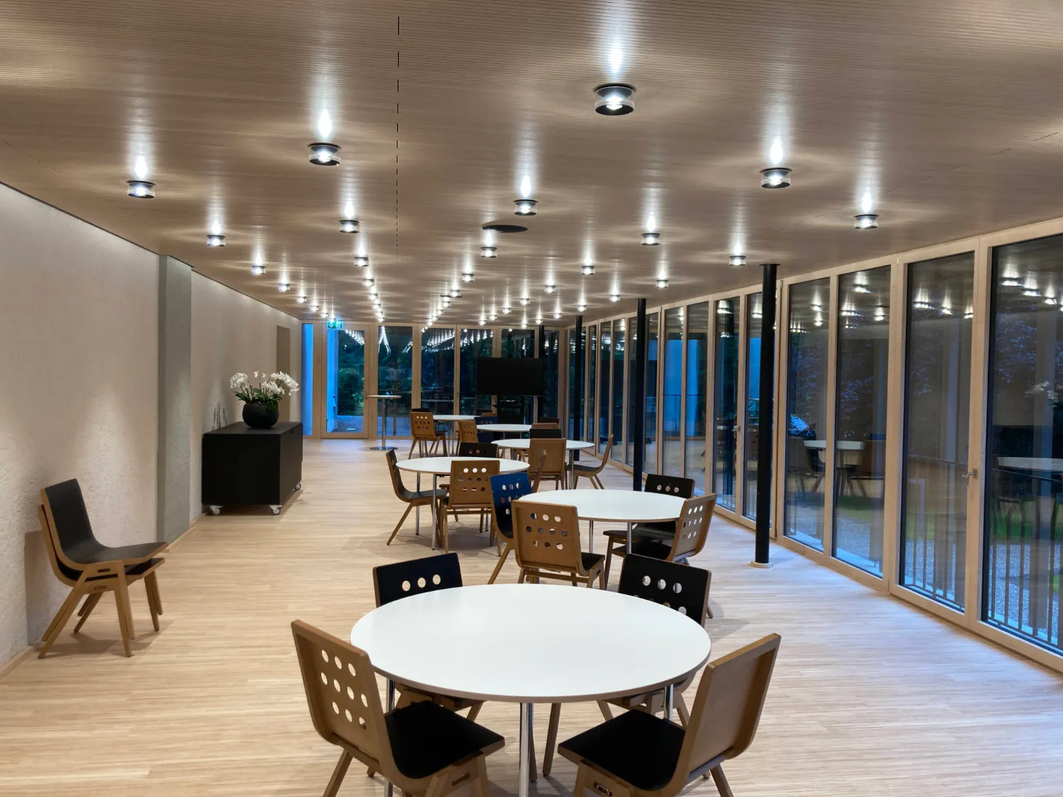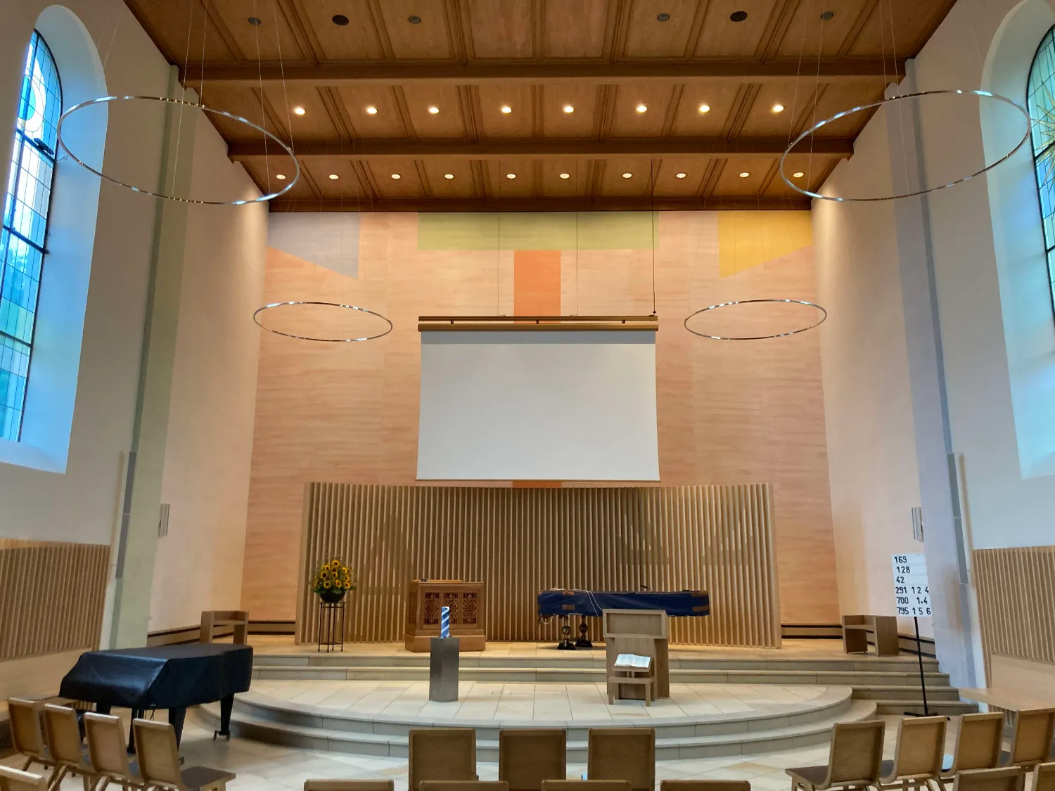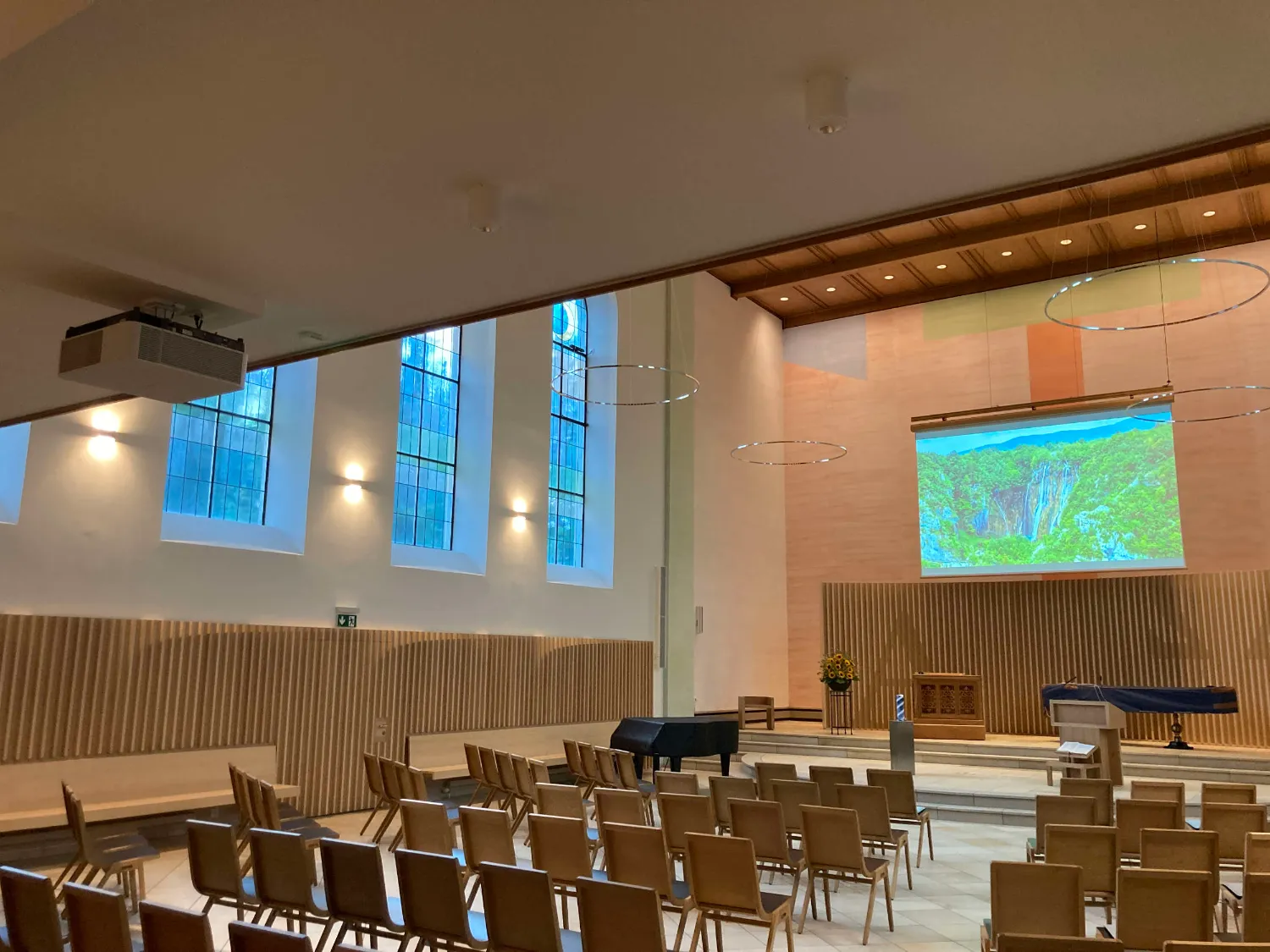 Bei der Renovierung der evangelisch-reformierten Kirche Rapperswil durfte die gesamte Erneuerung der Audio- und Videoanlage geplant und realisiert werden. Neben der Akustikanlage in der Kirche und im neu angebauten Foyer, wurde ein äusserst lichtstarker Beamer installiert. Dank dem motorisierten Abrollsystem, welches auf dem Dachboden installiert wurde, wird die Leinwand per Knopfdruck auf eine angenehme Höhe abgesenkt. Die digitalen Aktivlautsprecher sorgen für eine brillante Sprachverständlichkeit während den Gottesdiensten. Die gesamte Audio- und Videoanlage kann mittels Tablet und programmierten Bedieneinheiten gesteuert werden.