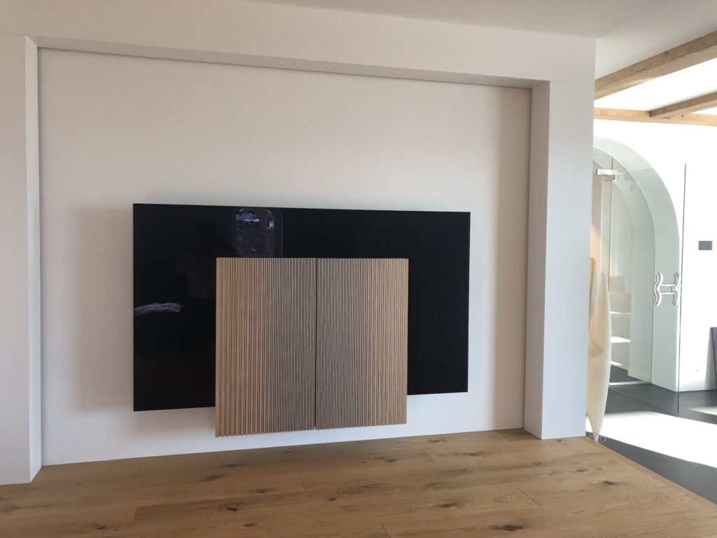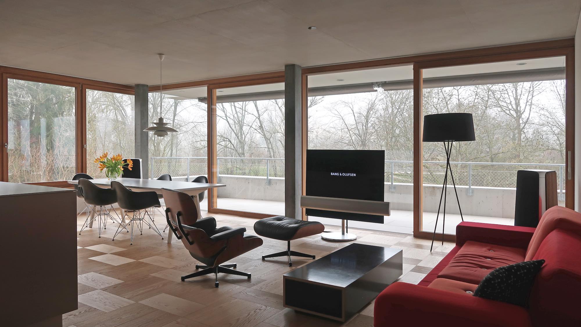 IIm Badezimmer dient ein Beosound Shape für angenehme Musik auf Knopfdruck. Im Wohnzimmer sorgt ein Beovision Eclipse 55" mit zwei Beolab 50 Lautsprecher für Musik-und Fernsehgenuss der Extraklasse.