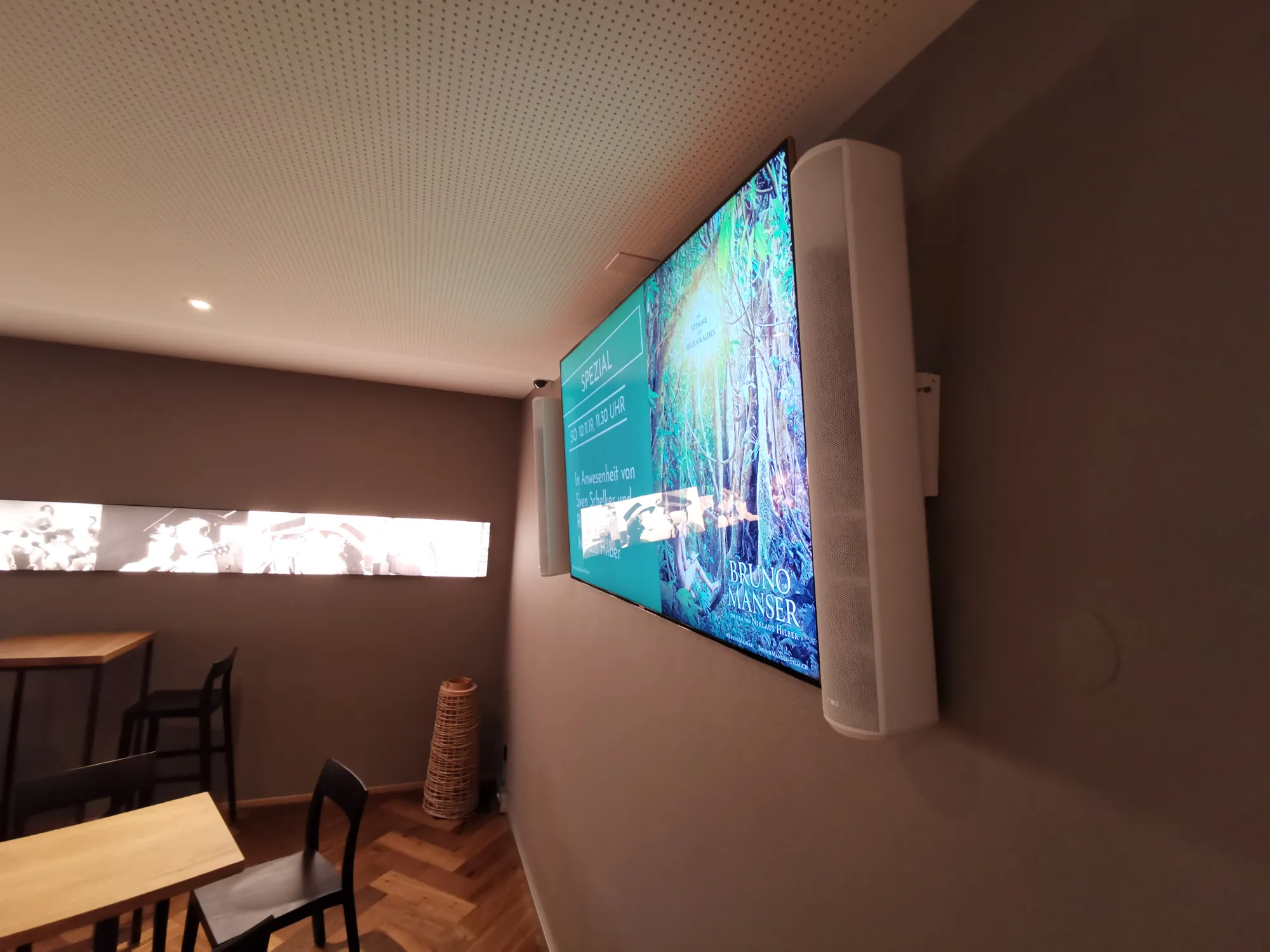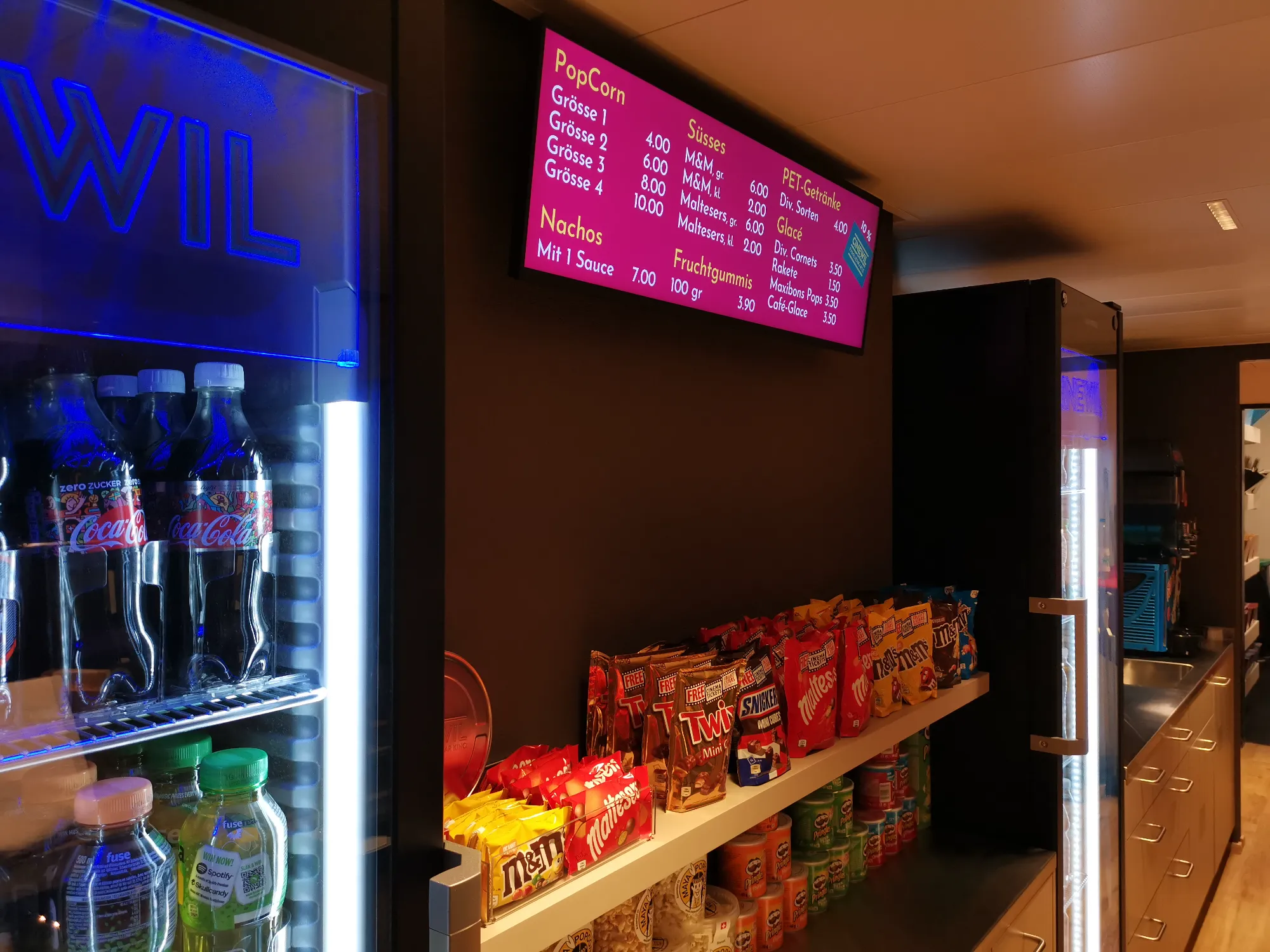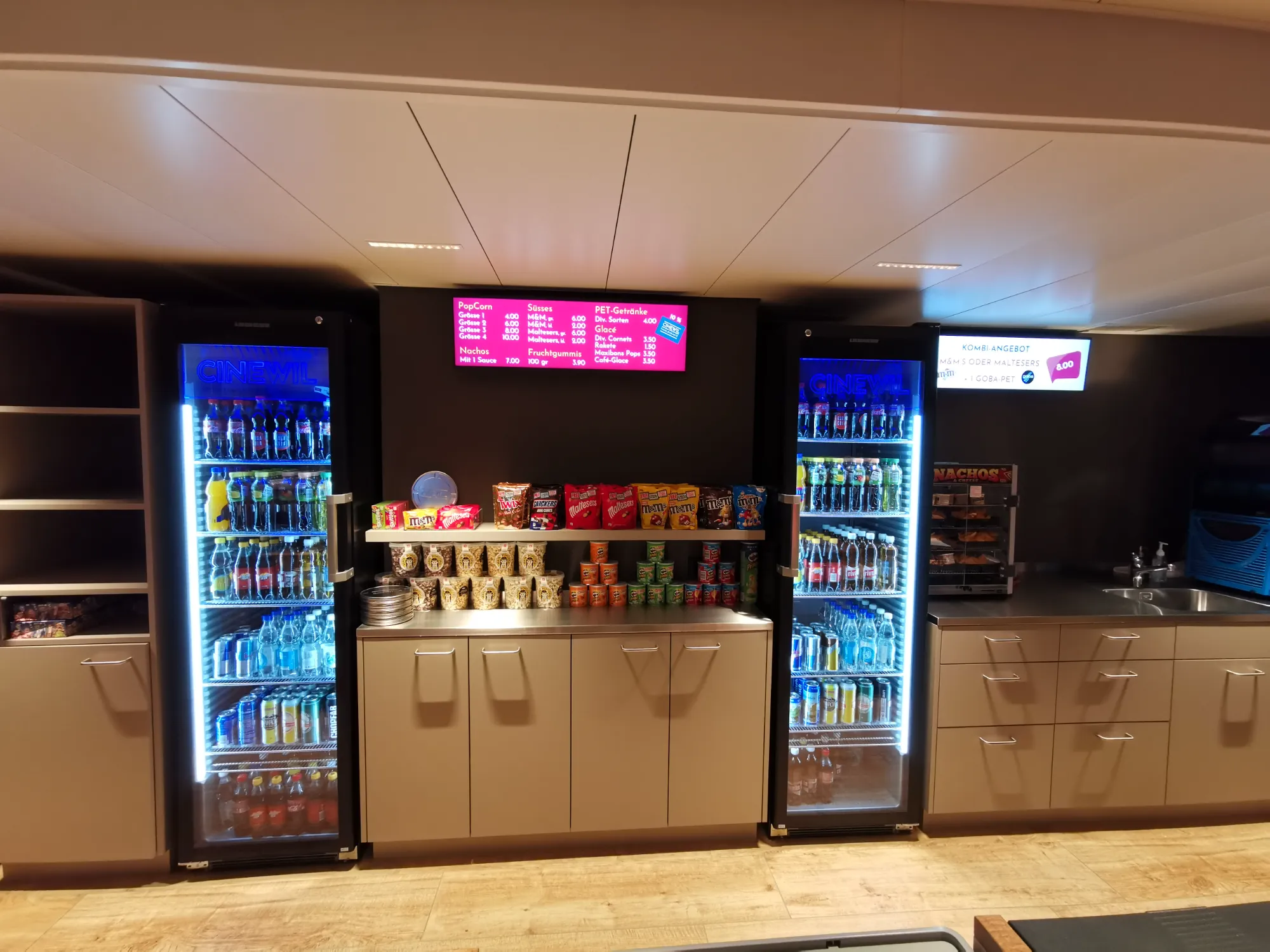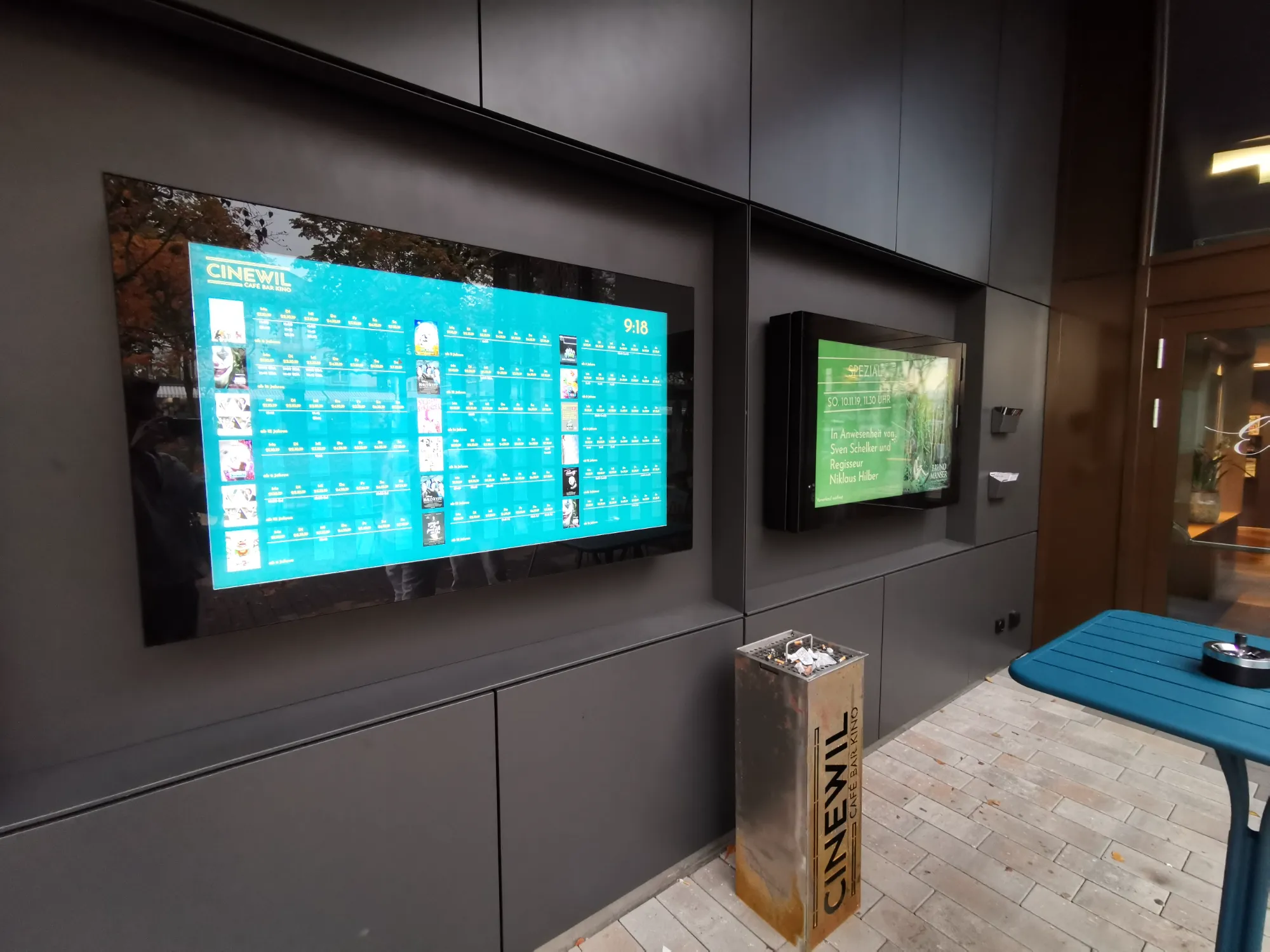 Beim Umbau vom Cinewil wurden diverse Profi-Display von Samsung installiert. Ein 98" Display für Trailer, vier Stretch-Display für die Preisanzeigen, ein 75" Display für Trailer und Vorträge sowie zwei Outdoor-Display in Wetterschutzgehäusen beim Eingang für die Programmübersicht. Im Aussenbereich wurden wetterfeste Bose Lautsprecher für die Beschallung installiert.