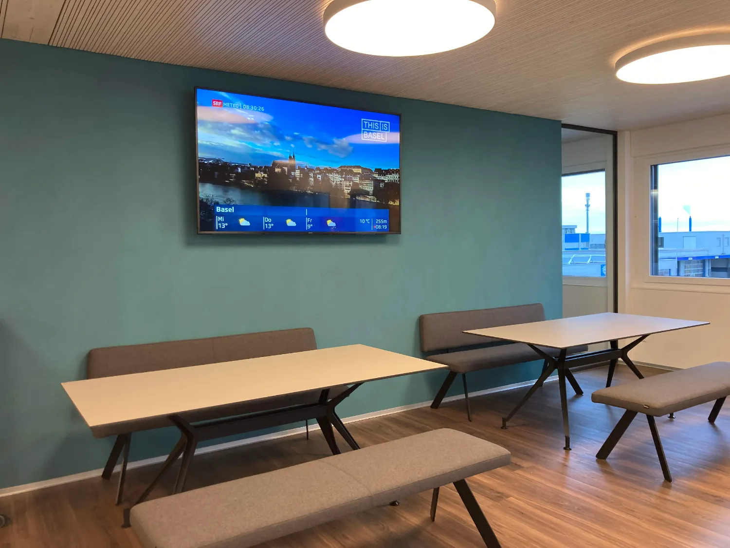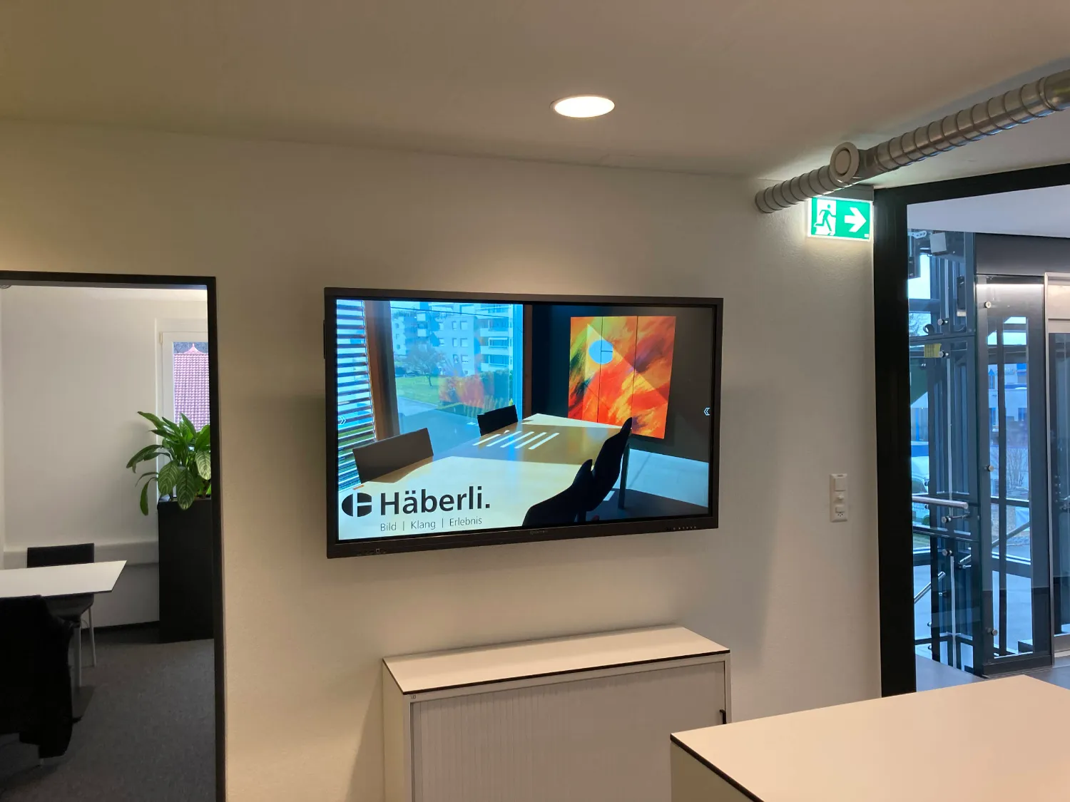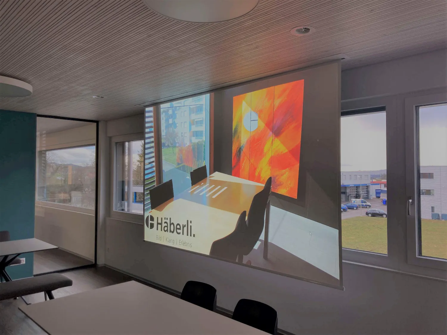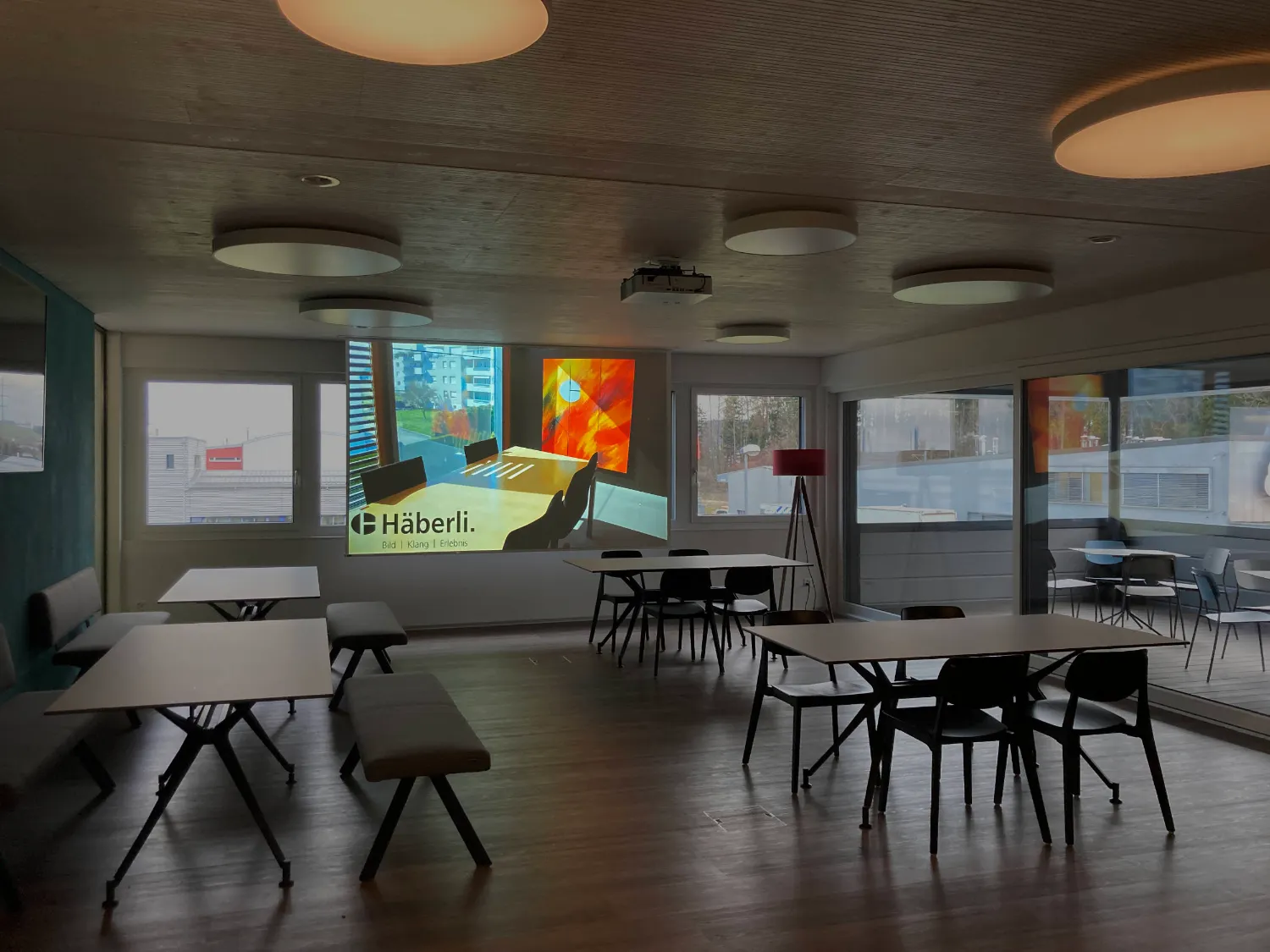 Beim Anbau der Büroräumlichkeiten der SIT AG in Sirnach wurden die neuen Videolösungen geplant und realisiert. Im grossen Aufenthaltsraum durfte ein Beamer mit einer motorisierten Leinwand und einem Präsentationssystem installiert werden. Weitere Zimmer durften mit einem Touch Display sowie einer Videokonferenzlösung ausgerüstet werden.