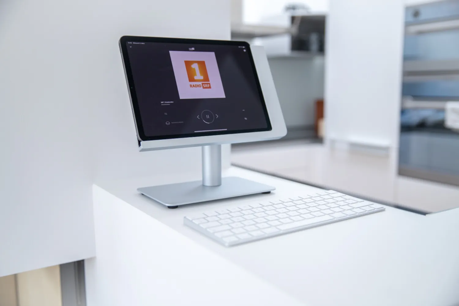 Eine neue Ferienwohnung durfte mit Multimedia- und Netzwerkprodukten ausgestattet werden. Im Wohnzimmer sorgt ein Swiss HD Möbel mit integrierten Stereo-Lautsprecher und einem Swiss HD Verstärker für atemberaubenden Musikgenuss. Auch der TV-Ton des LG OLED Fernsehers wird automatisch über die Stereo-Lautsprecher abgespielt. In den Zimmern und Bädern wurden Multiroom Produkte von Bang & Olufsen installiert. Ein iPad mit einer drehbaren Halterung dient als zentrale Steuerung für das gesamte System. Diverse Access Point sorgen für ein flächendeckendes WLAN.
